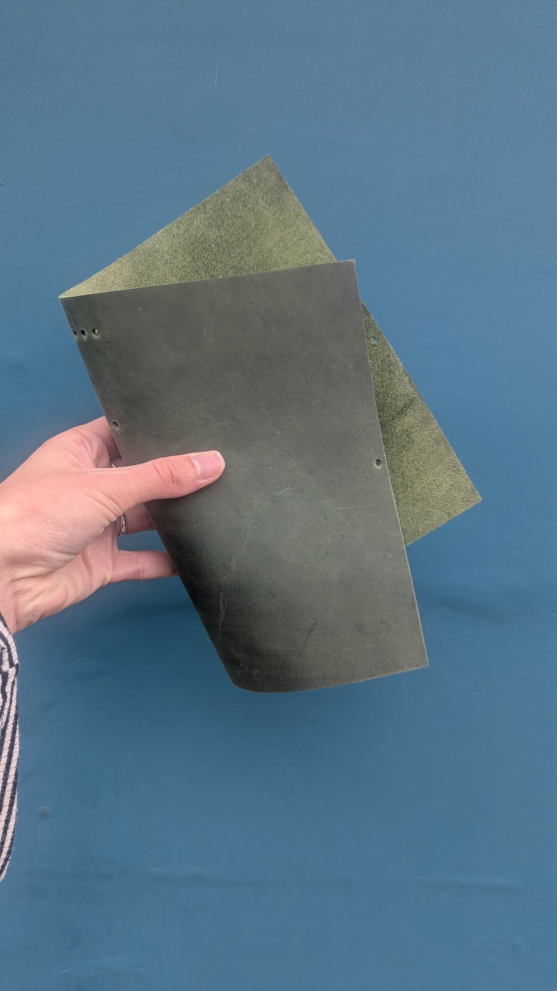 - Our leather changes based on availability, but we do have a steady flow of etching leather in multiple colours. Please see photos for colour options, but please note colour may vary between your screen and ours. The leather covers pictured are shown next to their undersides, as this gives you an indication of the the colour brought out by the etching process.