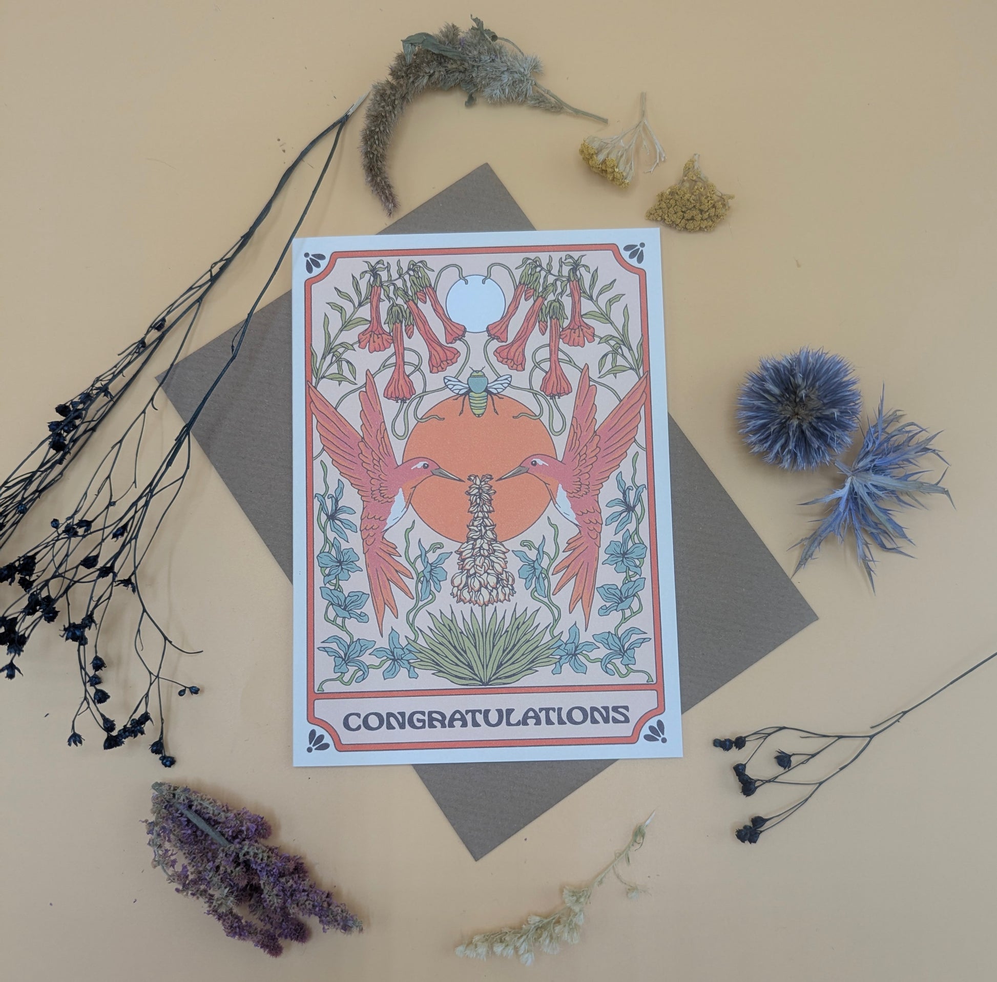 Designed and made in the UK, our greetings cards are printed on premium quality textured card and include a kraft envelope. • High quality textured 300gsm card • Blank Inside • A6 size, or 105 x 148 mm (4.1 x 5.8 inches) • Kraft envelope enclosed