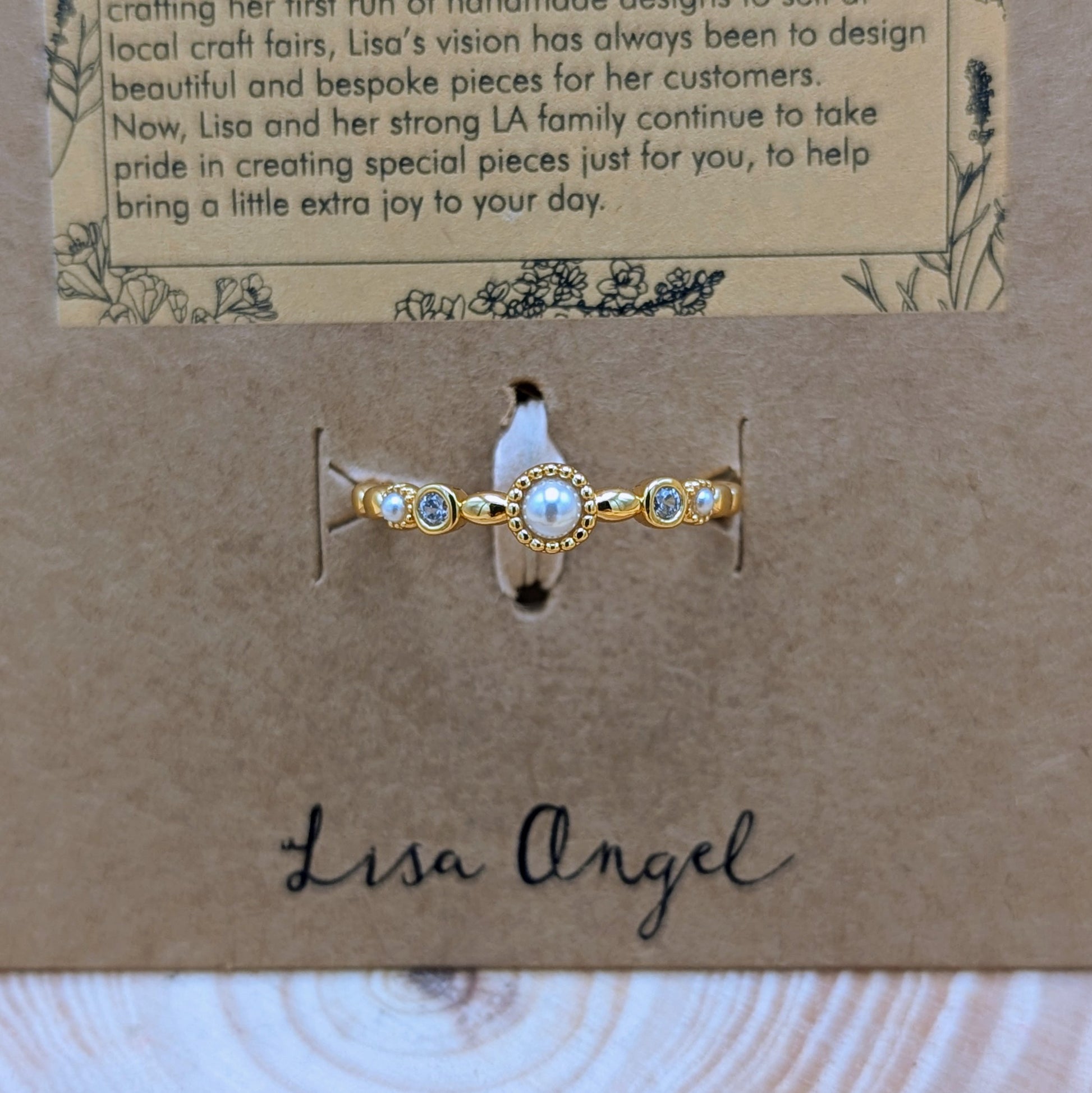 Dainty Pearl and Crystal Stacking Ring in Gold