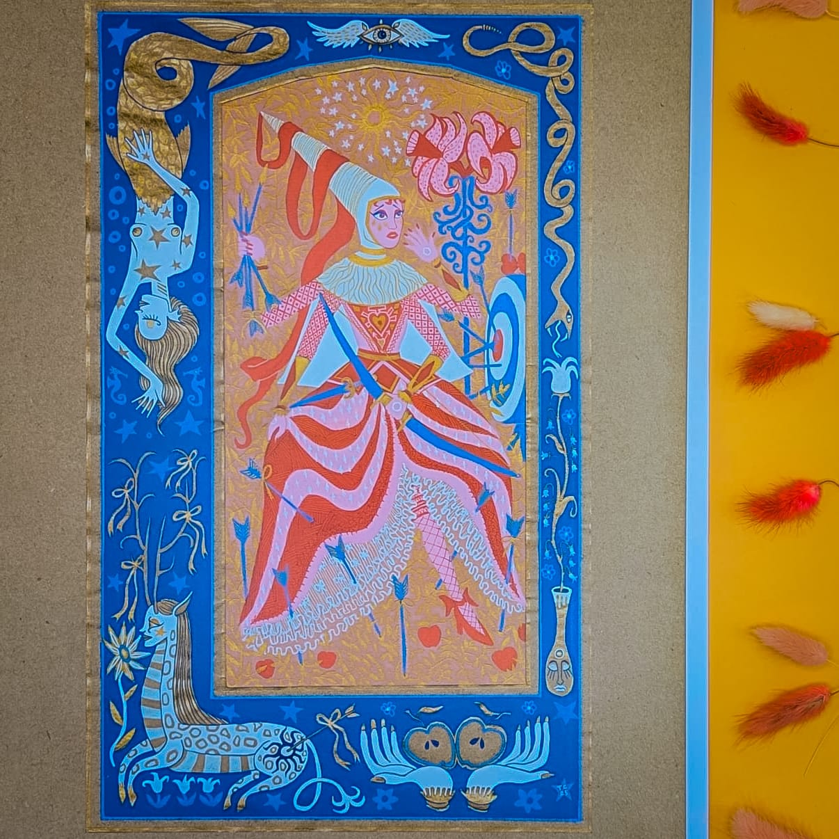 This is an A3 digital art print, and is shipped flat with protective sleeve and backing board.