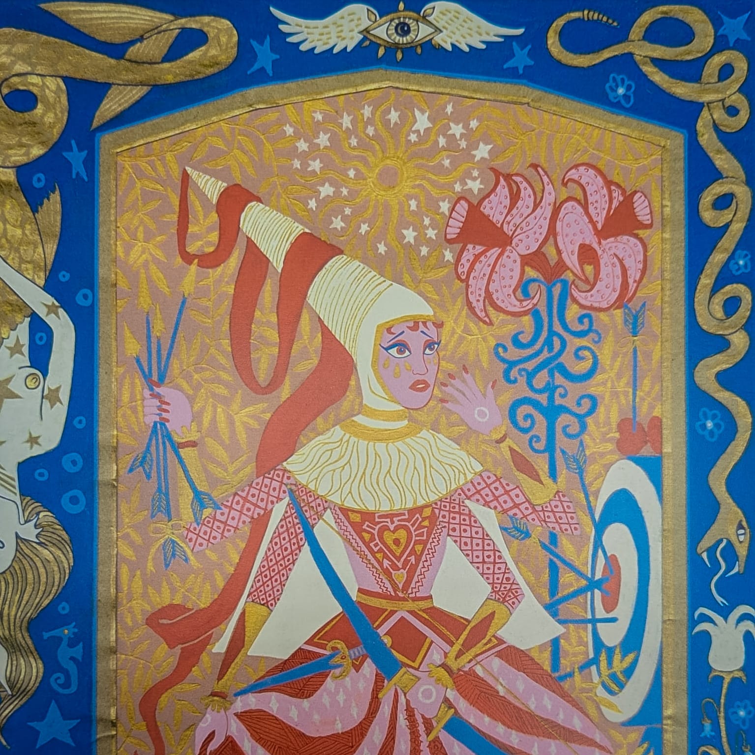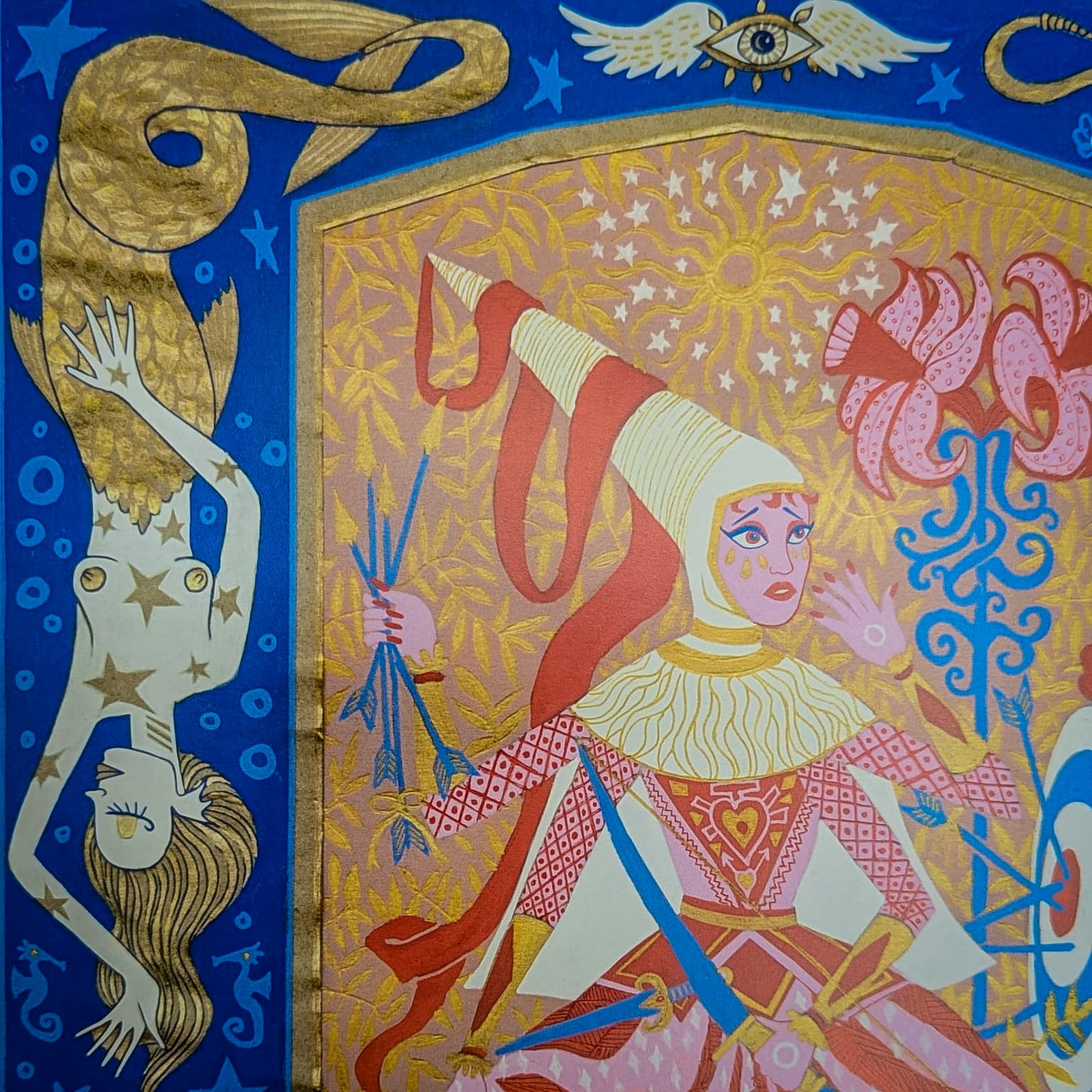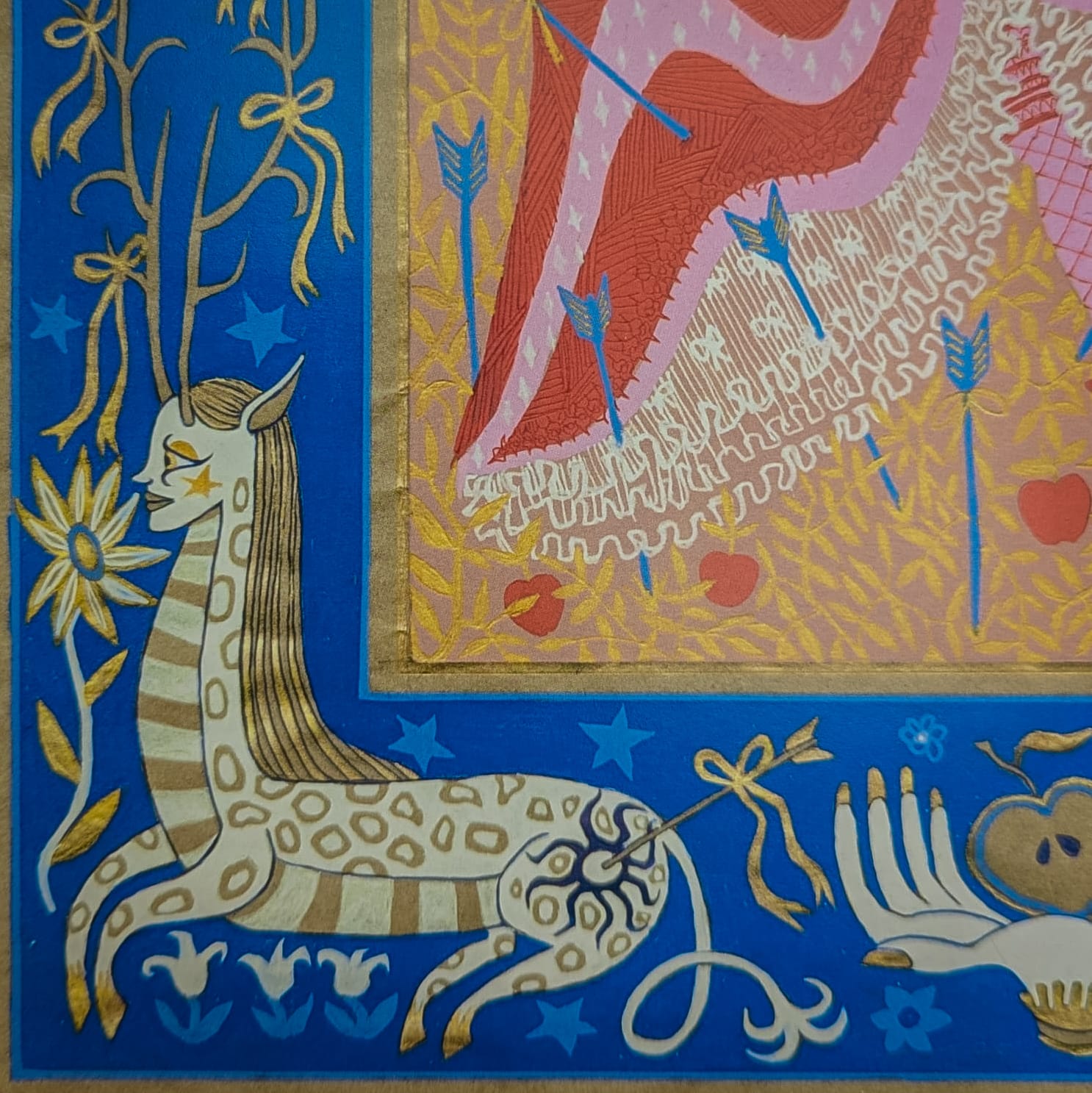 Theo Cleary is a Manchester-born, Edinburgh-based visual artist, illustrator and musician whose work explores folklore, dreams and queer identity, inspired by medieval manuscripts, comic books and pulp ephemera. Their work is often figurative and detailed, featuring dark and cryptic fantastical themes.
