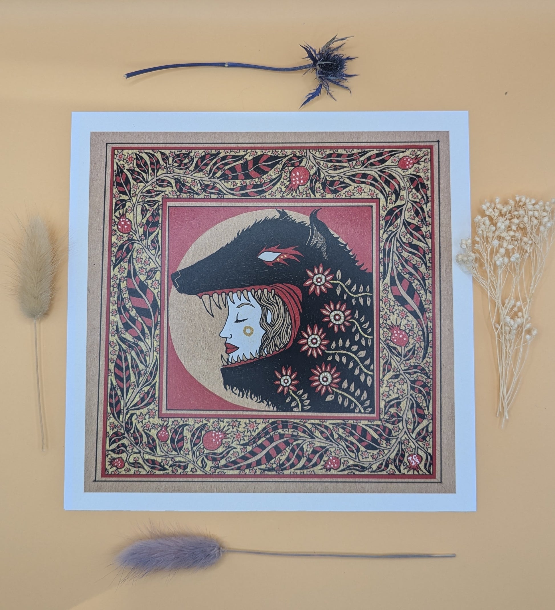 This is an A4 square digital art print, measuring 21 x 21cm, and is shipped flat with protective sleeve and backing board.