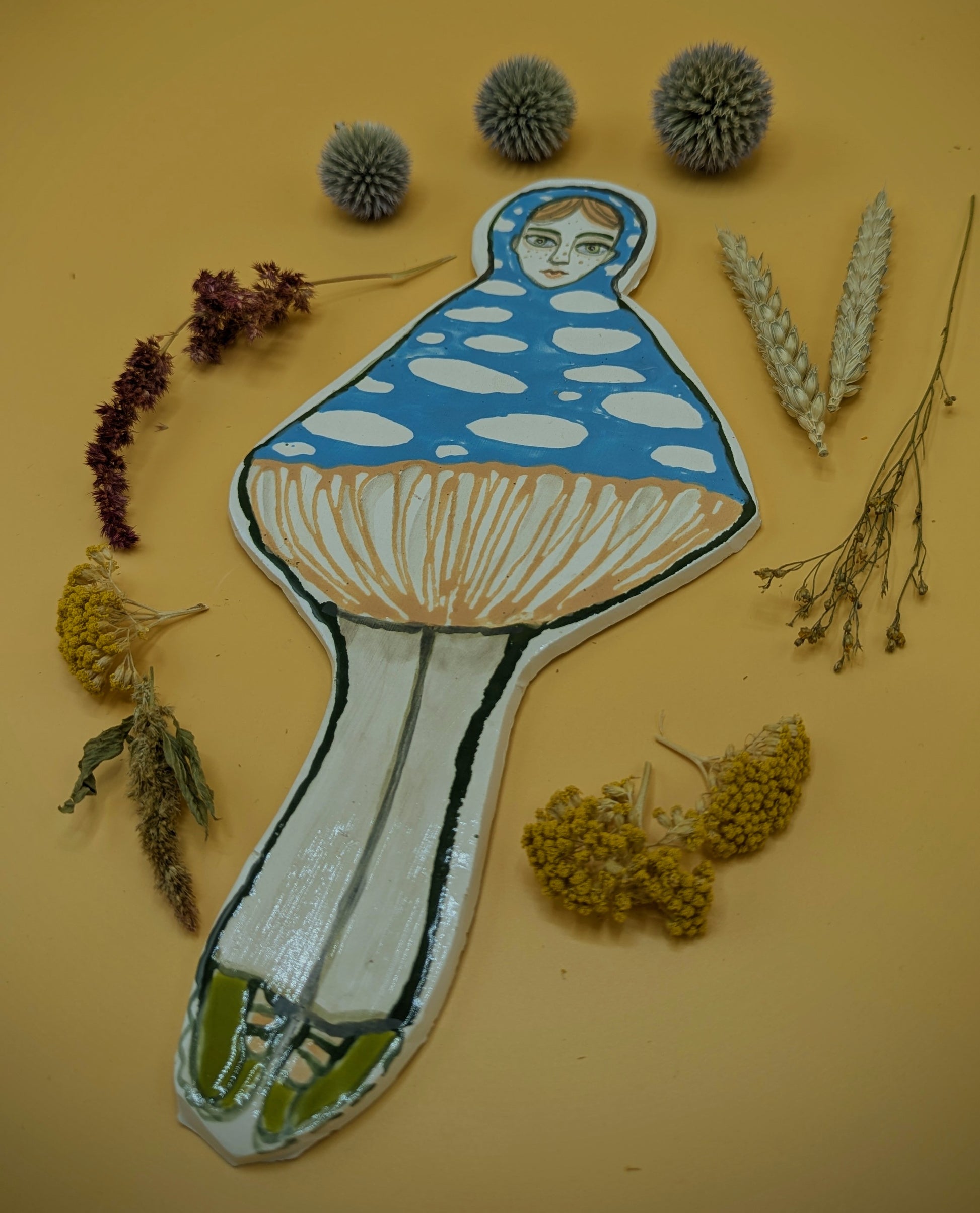 Ciara Veronica Dunne is a visual artist from Ireland who has been living in Edinburgh since 2011. She makes functional and ceremonial handmade Art objects. Her illustrated ceramic style is informed by Magic Realism, cultural syncretism, Surrealism and folklore as anthropology.