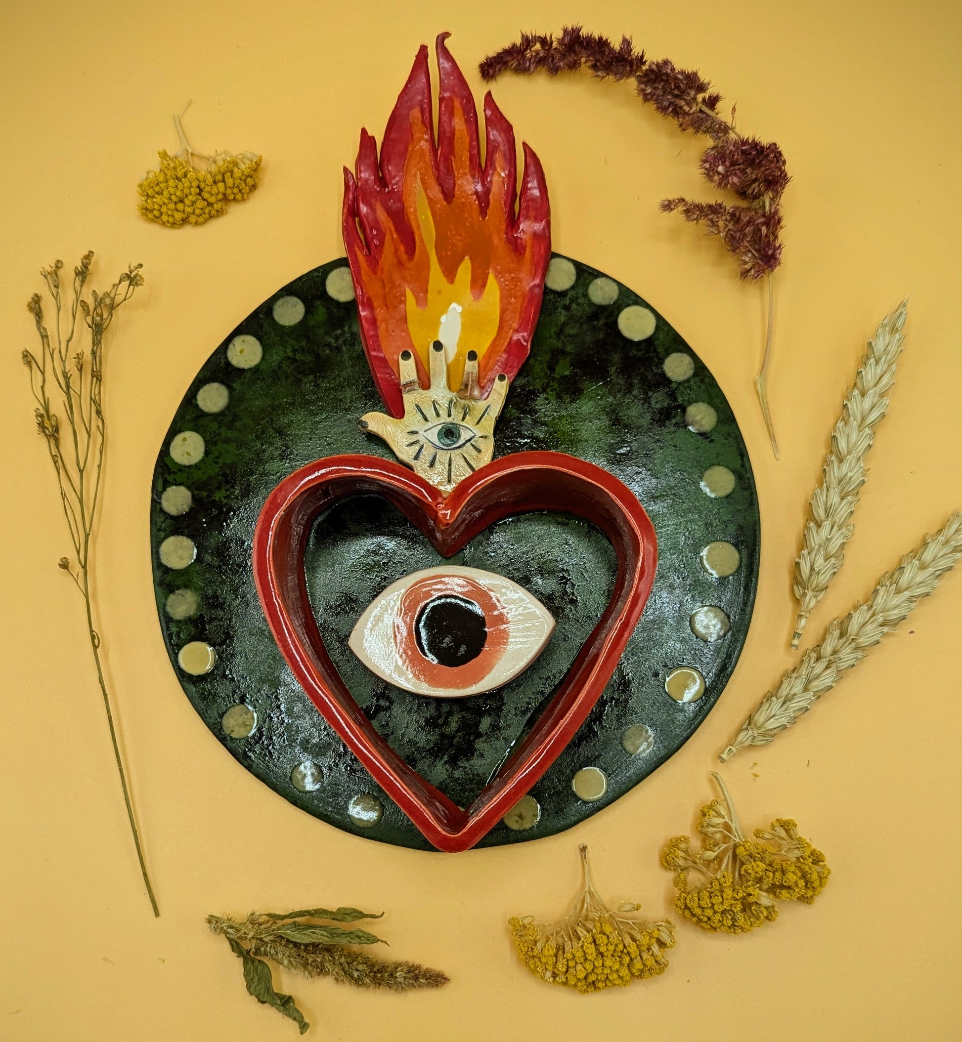 Ciara Veronica Dunne is a visual artist from Ireland who has been living in Edinburgh since 2011. She makes functional and ceremonial handmade Art objects. Her illustrated ceramic style is informed by Magic Realism, cultural syncretism, Surrealism and folklore as anthropology.