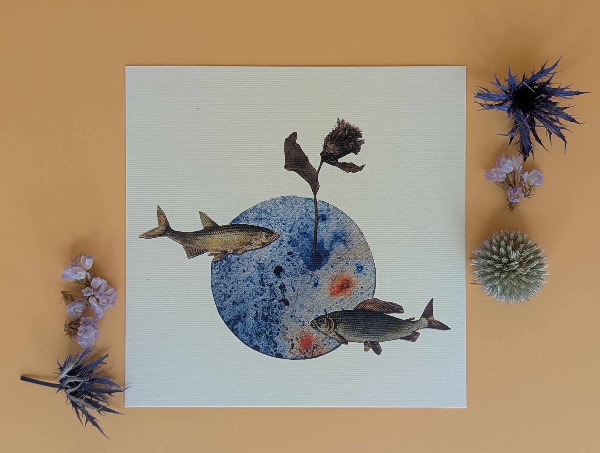 Maria Poyato is an Edinburgh based artist. She gets inspiration from surrounding landscapes, nostalgic feelings and elements from nature that have lived and endured a long time. Like fossils, rocks, shells, footprints, etc. She experiments with earthy colours, textures and found objects, specially from the forest and the sea. Her work has a certain rustic, homely and not-perfect feel, with a cute witchy and fairy touch.