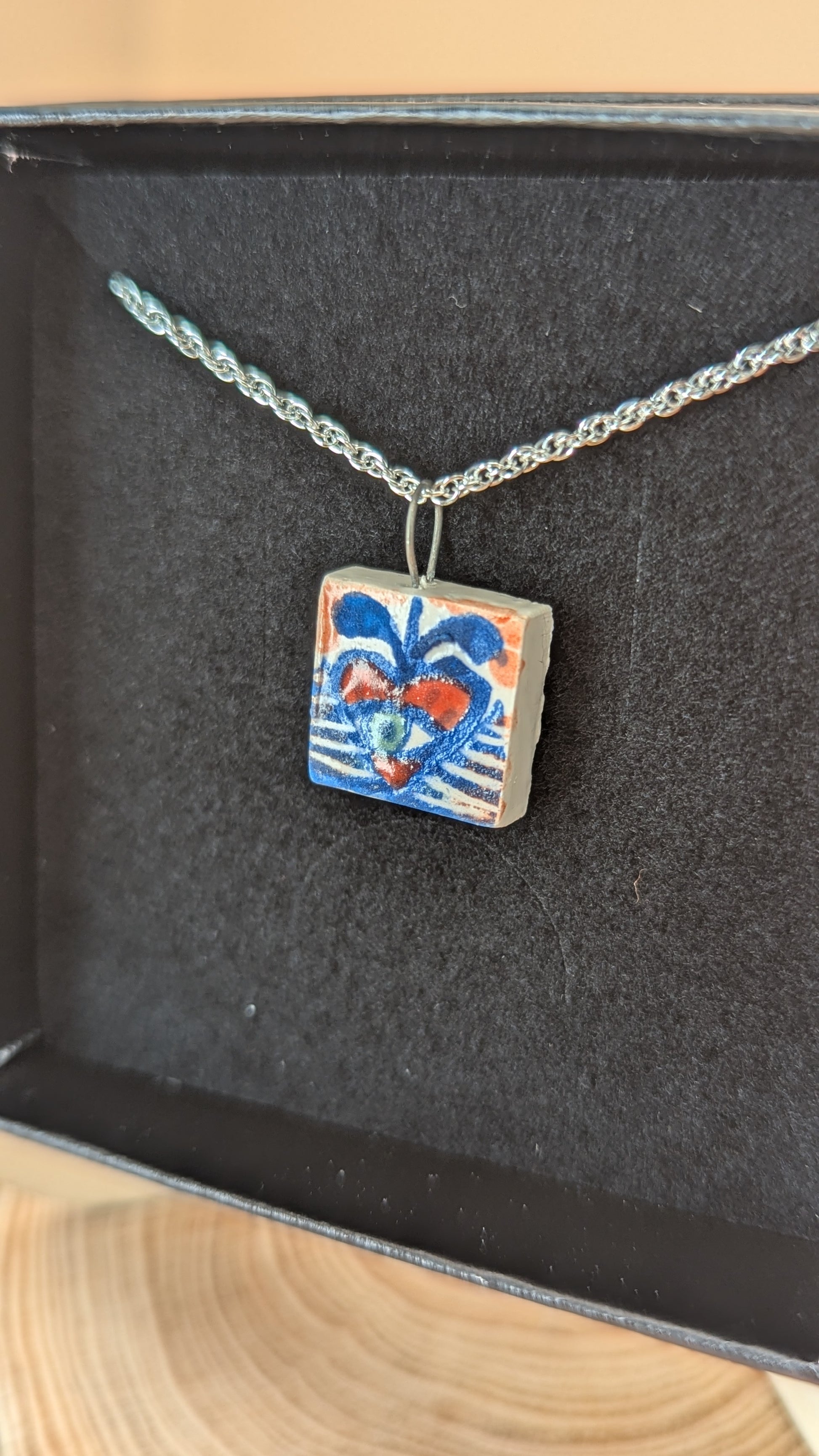 Small ceramic heart and eye design pendant on silver necklace chain by Ciara Veronica Dunne
