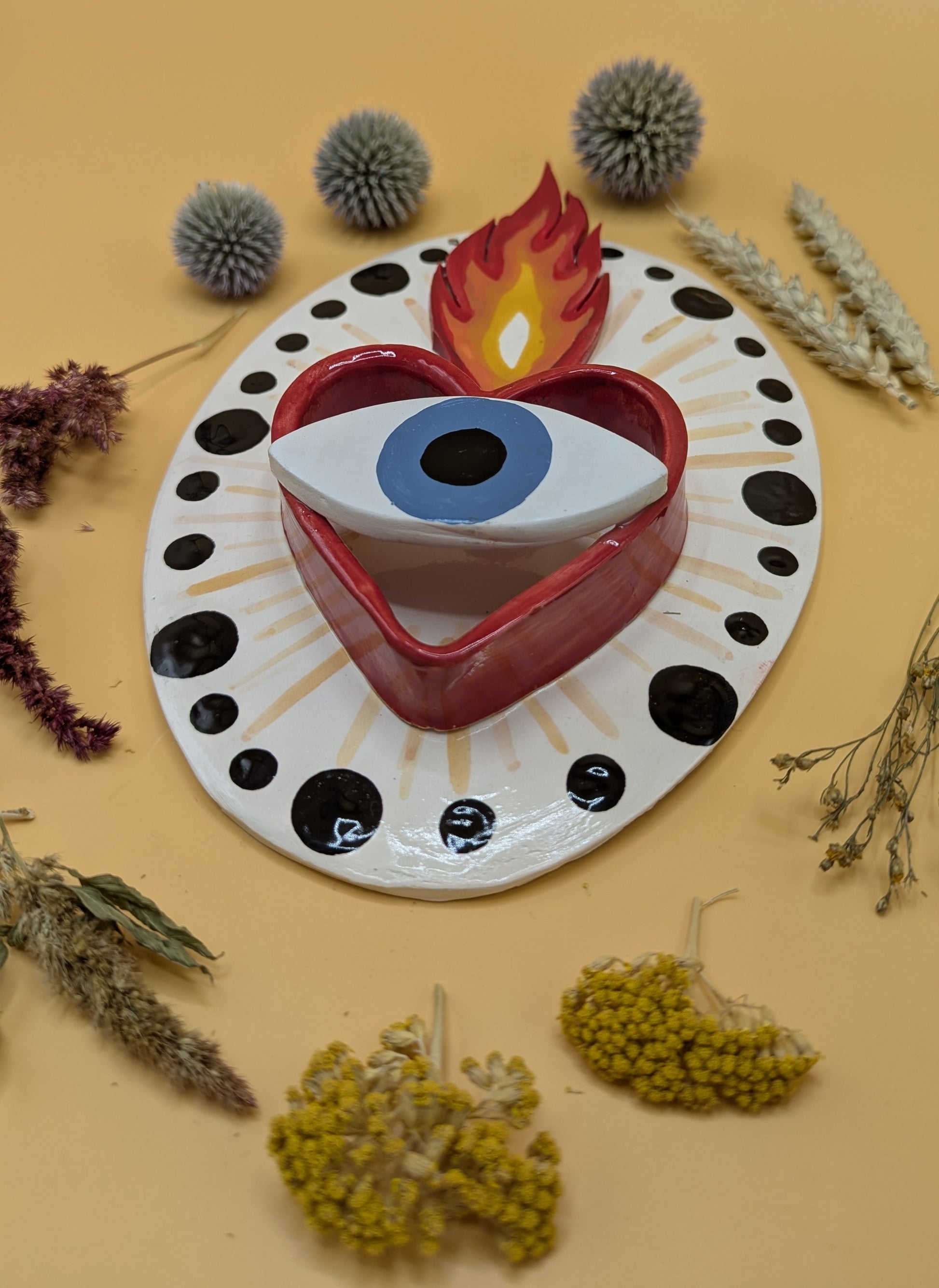 Ciara Veronica Dunne is a visual artist from Ireland who has been living in Edinburgh since 2011. She makes functional and ceremonial handmade Art objects. Her illustrated ceramic style is informed by Magic Realism, cultural syncretism, Surrealism and folklore as anthropology.